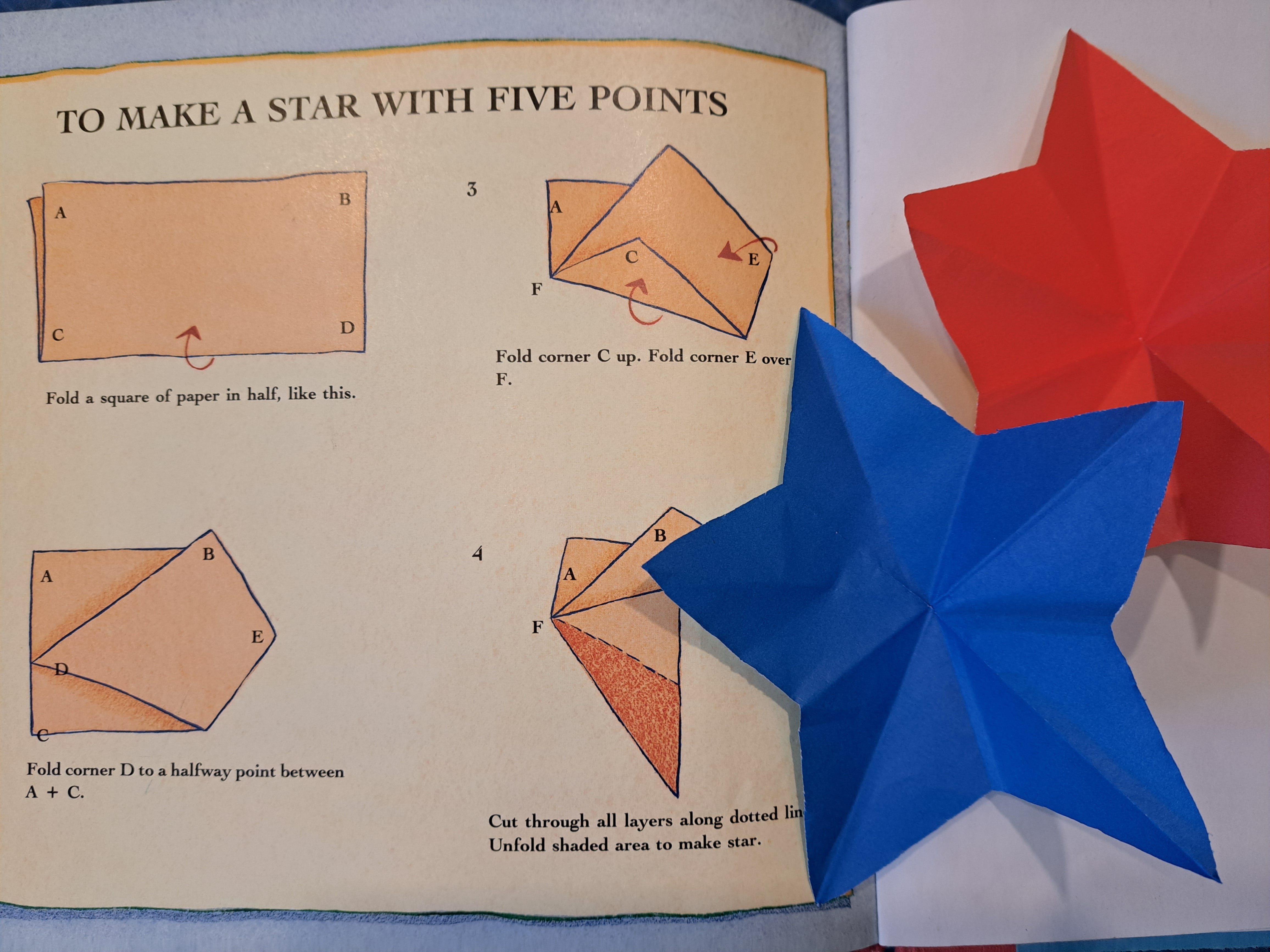 This week, I used Betsy Ross’s pattern to cut a five pointed star with one snip.